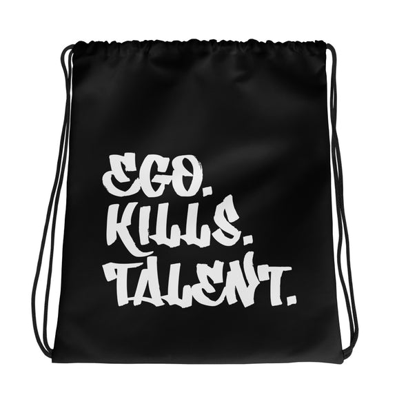 ¡Lleva tus necesidades diarias con estilo, fuerza y sustancia! Esta mochila con cordón Ego Kills Talent presenta un poderoso mensaje de fortaleza y confianza, que inspira a todos los que te ven a dejar de lado su ego y concentrarse en sus talentos y pasiones. Durable y perfecto para ocasiones al aire libre, este elegante bolso lo ayudará a llevar su mensaje y sus necesidades con facilidad. ¿Estás listo para hacer una declaración?